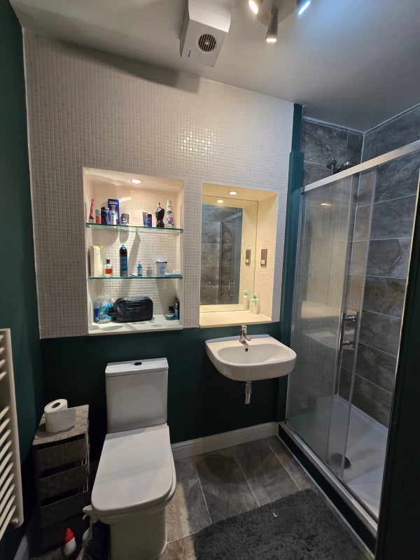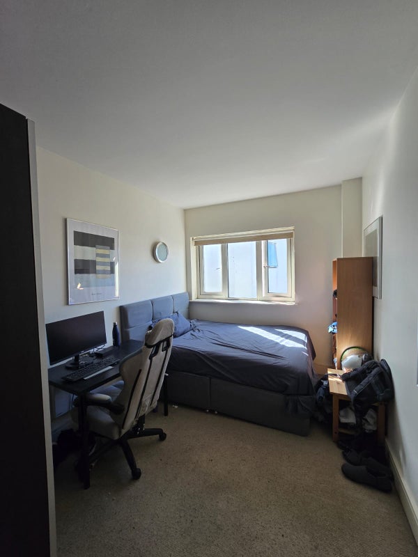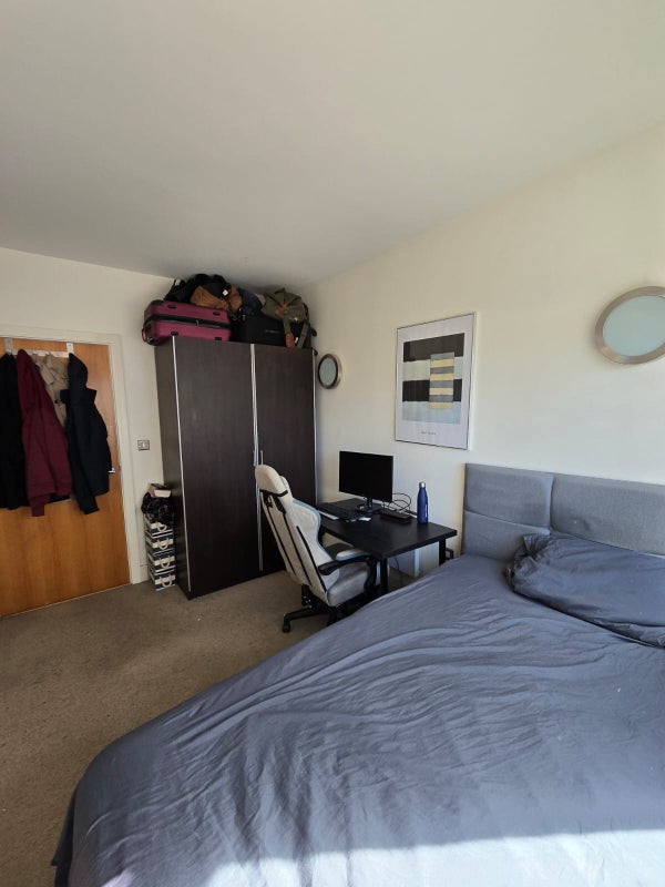 Priced at £1,350 - good sized double upstairs on the same level as entrance, sitting room and kitchen, exclusive use bathroom containing desk / office chair. and generous window with lots of natural light. Ideal for WFH. You'll be able to have your own quiet space away from the rest of the flat. The bathroom have just been refurbished to a very good standard wit large good pressured shower.