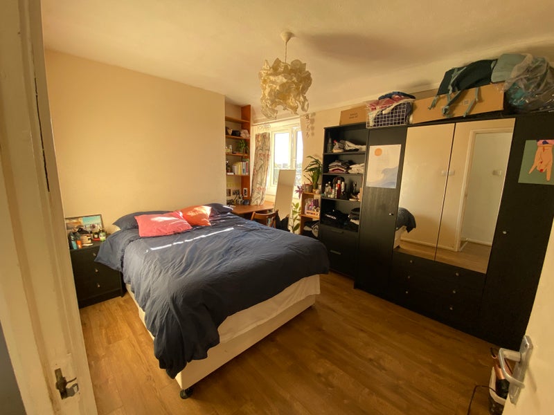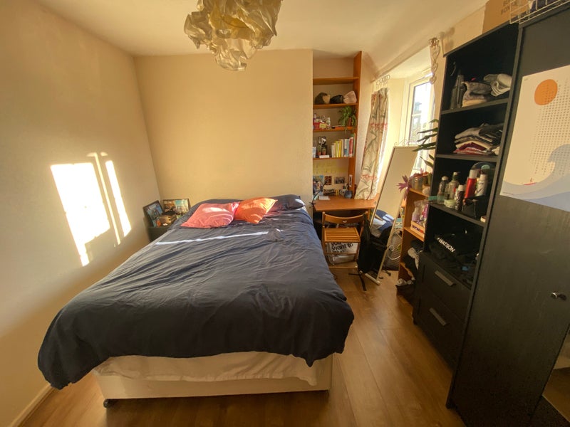 The room up for rent is pretty big (see photos), with double bed, and a big wardrobe and desk that my flatmate can sell to the new tenant.