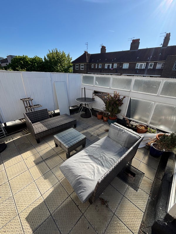 The flat is located close to Bethnal Green underground station - walking distance to Whitechapel and Bethnal Green overground. Lots of nice cafe's and bars around too! The flat itself is 3-bedrooms, one dining room and one living room, alongside a terrace and balcony. There is a shower + toilet upstairs as well as a separate toilet downstairs. I'm just looking for someone to cover the rent (1050pcm) and I'll cover the bills.