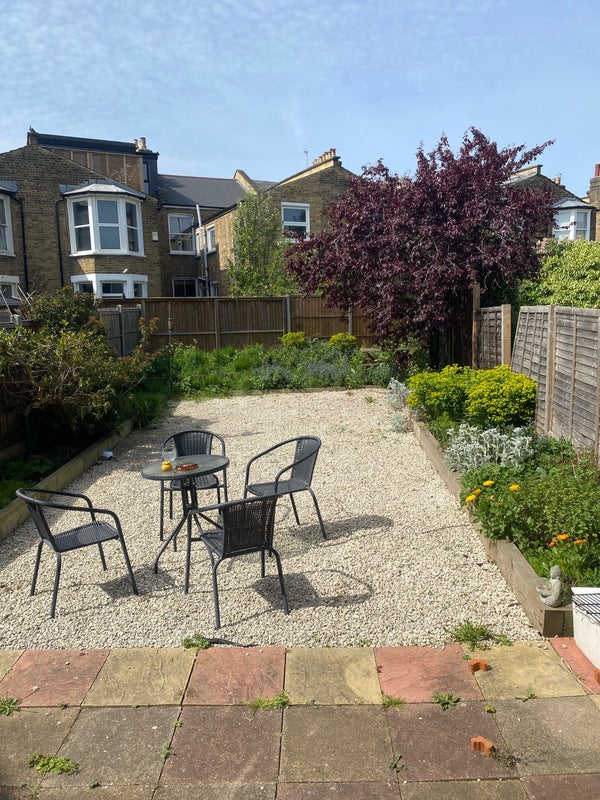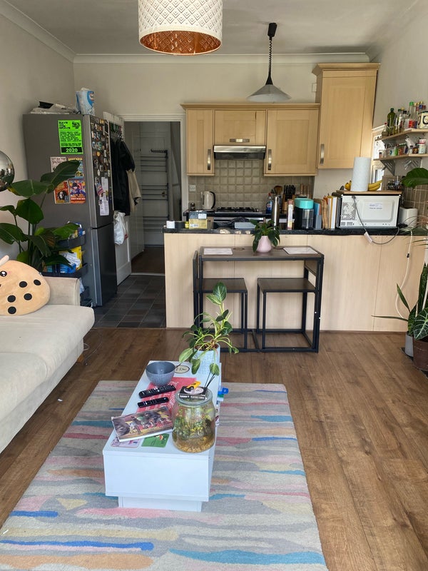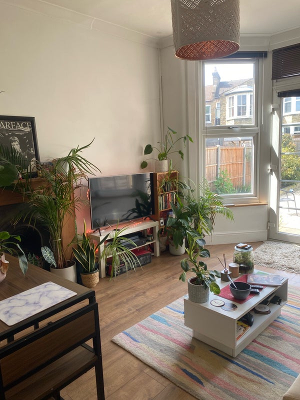 The flat itself is relaxed, clean and well-kept. It has a standard bathroom with bath and shower, a modern kitchen with plenty of worktop and storage space (plus oven, microwave, toaster and kettle), and a small but cosy lounge filled with houseplants. The highlight is the large private rear garden! a real suntrap, perfect for WFH days or summer BBQs. There’s also on-street parking available with no permits or charges.