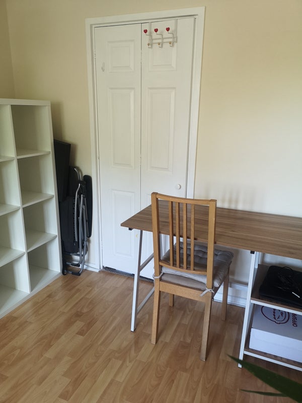 Lovely room, spacious with a cupboard, shelfs and a table, no wardrobe, there are hangers and hooks. Sharing a 3 bedroom flat with 2 other flatmates. Quiet and calm environment, residential area in a great location near King's cross. Shared kitchen and bathroom.