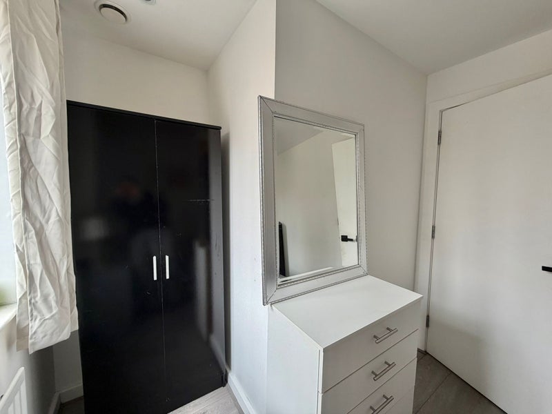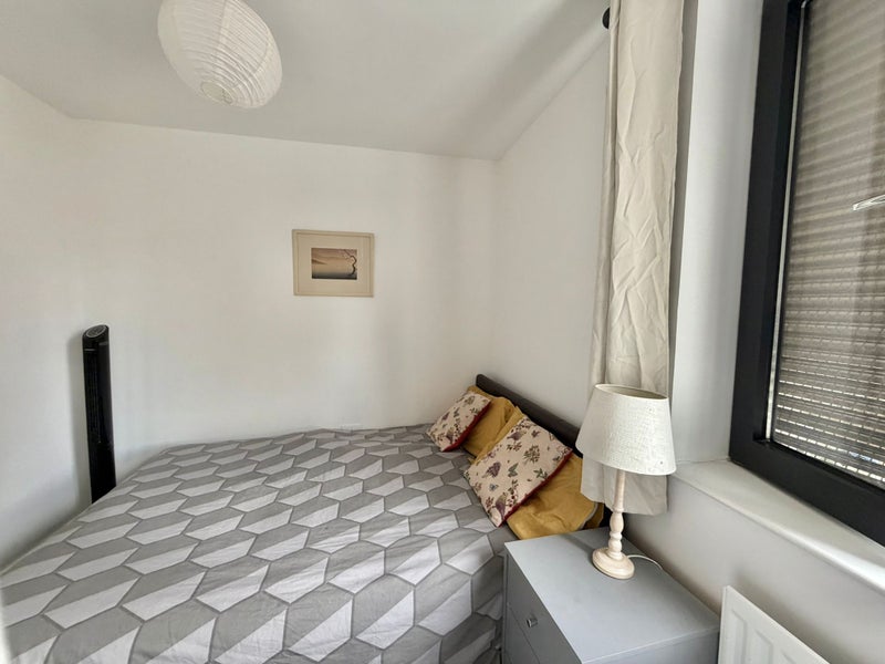 This modern apartment boasts a spacious room with the added benefit of a private garden