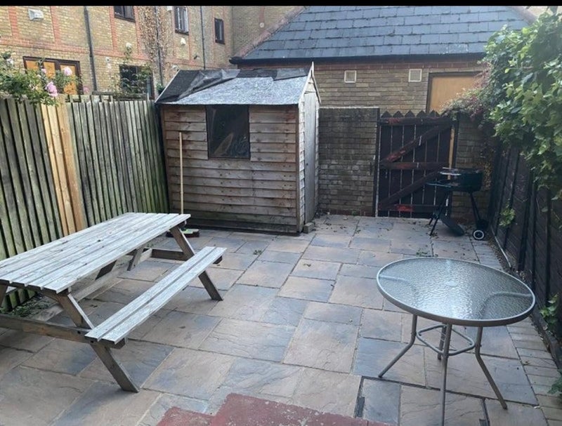 • Outdoor Space: Low-maintenance slabbed garden with a small storage shed for extra gear.