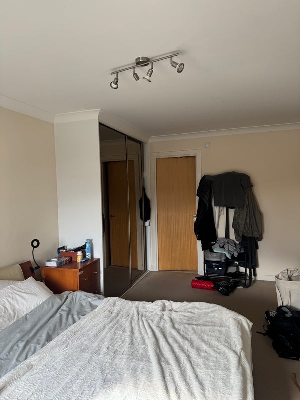 This is the larger bedroom of the two. It is ensuite, it has a large wardrobe with mirrors. The flat is southeast facing so we get the sun until around 2pm in the summer, which is perfect for tanning in the balcony.