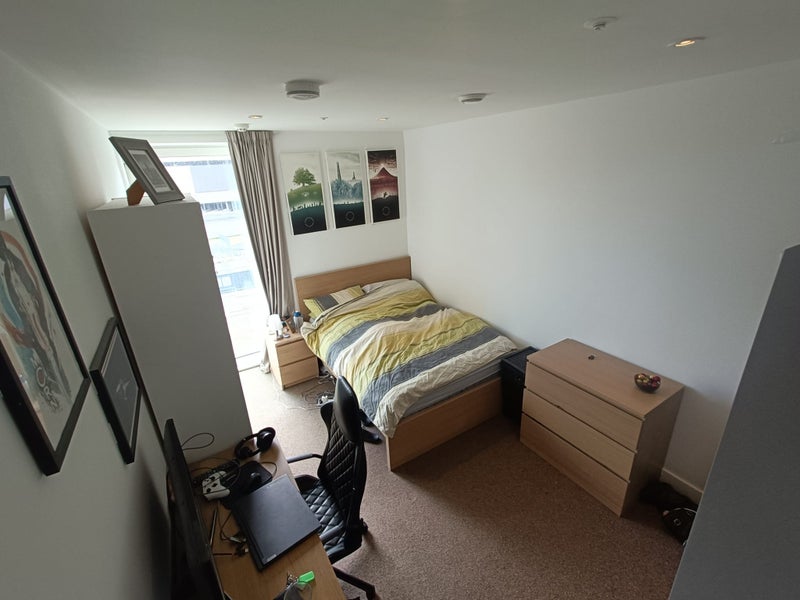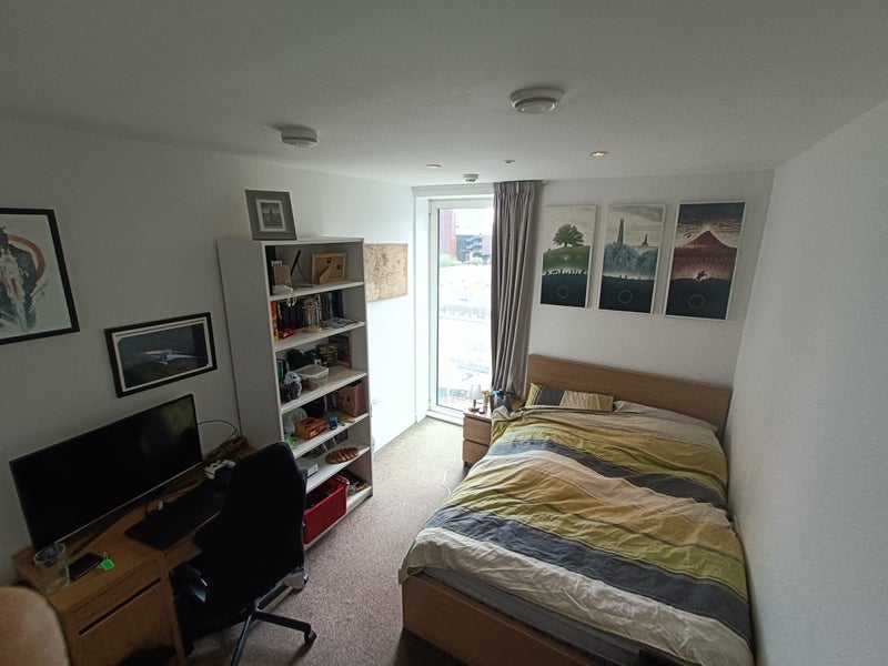 South facing double room available in a modern 2-bed, 2-bath flat in East Village, E20. My current flatmate is moving out after buying locally, so I’m looking for someone to take over his room. It’s a relaxed, tidy, and respectful home rather than a big social/party flat, so someone who fits that vibe would be ideal.