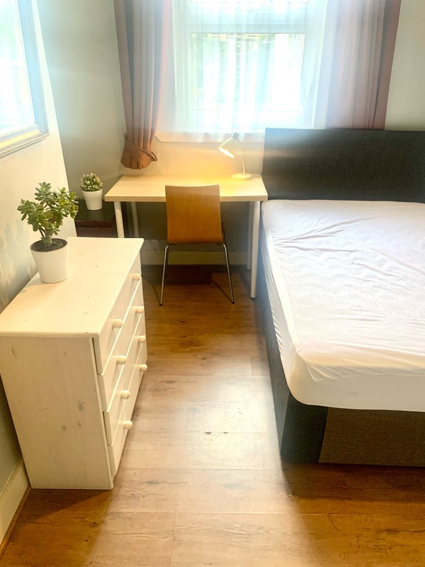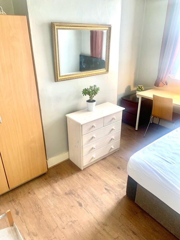 House is double glazed throughout, the room is fully furnished: double bed with mattress, wardrobe, chest of draws, desk, chair and unlimited full fibre Wi-Fi internet connection.