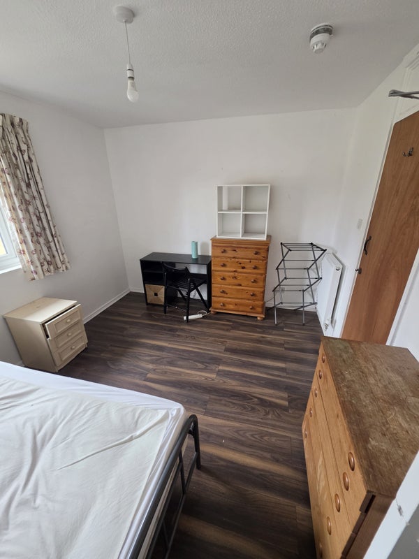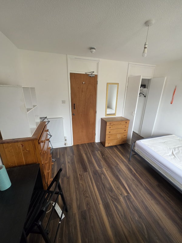 The room is fully refubished bed NEW MATTRESS drawers/lockers/tables ,fitted wardrobe you are welcome to bring your own but what is provided will not be removed .