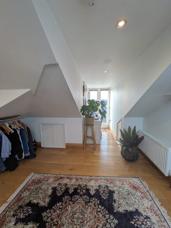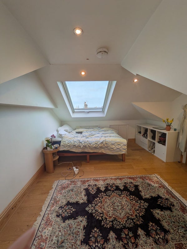 The room is the entire loft floor, so it’s super spacious, cosy, and filled with natural light. Rent is £1333 per month, with bills around £120 (and hopefully a bit less in the warmer months).