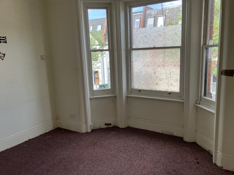 The flat offers one double bedroom with high ceilings and bay windows, a separate and generous modern eat-in kitchen with dining area and a spacious separate front facing lounge. Bathroom with shower attachment.