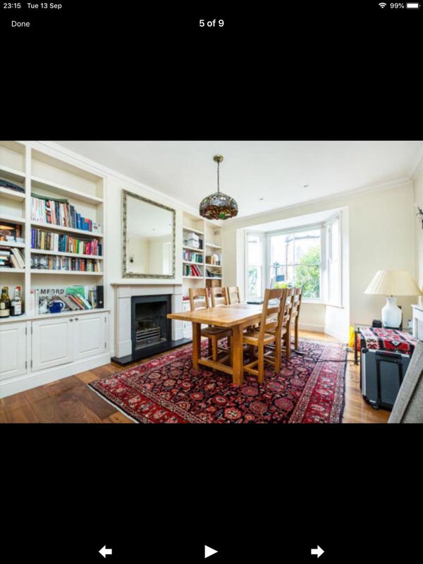 Stunning extra large King size bedroom (no tv) in a 4 bedroom detached house with large kitchen and living room in the heart of Grove Park. Beautiful outside back garden. King size bed. Bathroom shared with two other clean people.
