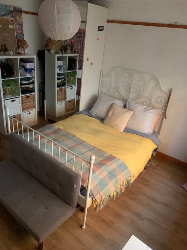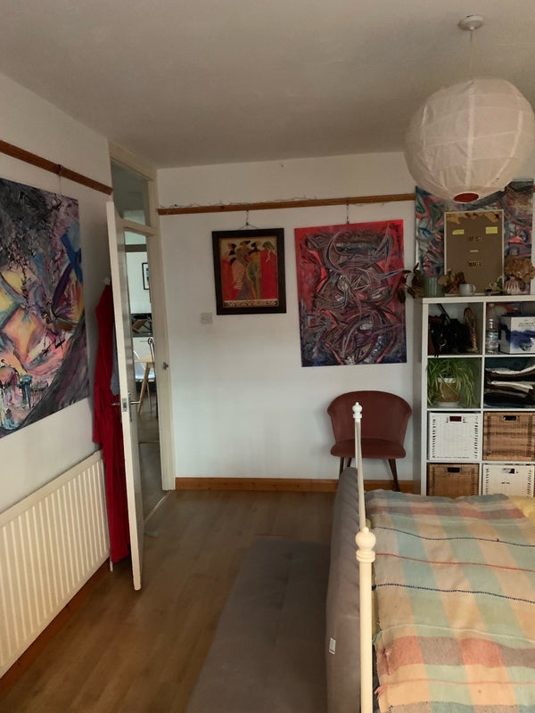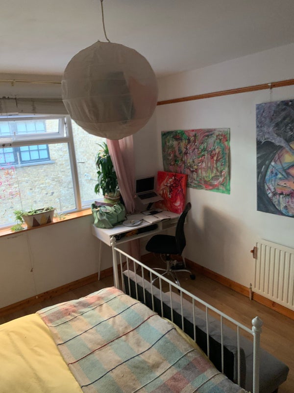 Available now until May 15 SUBLET £530 for whole time including bills. Open to dates within the range. One elegant room available in a 2 bed flat. Shared bathroom and kitchen. Lots of space within the bedroom with different seating areas, comfortable double bed, desk, a whole wall of windows, and lots of art and plants!