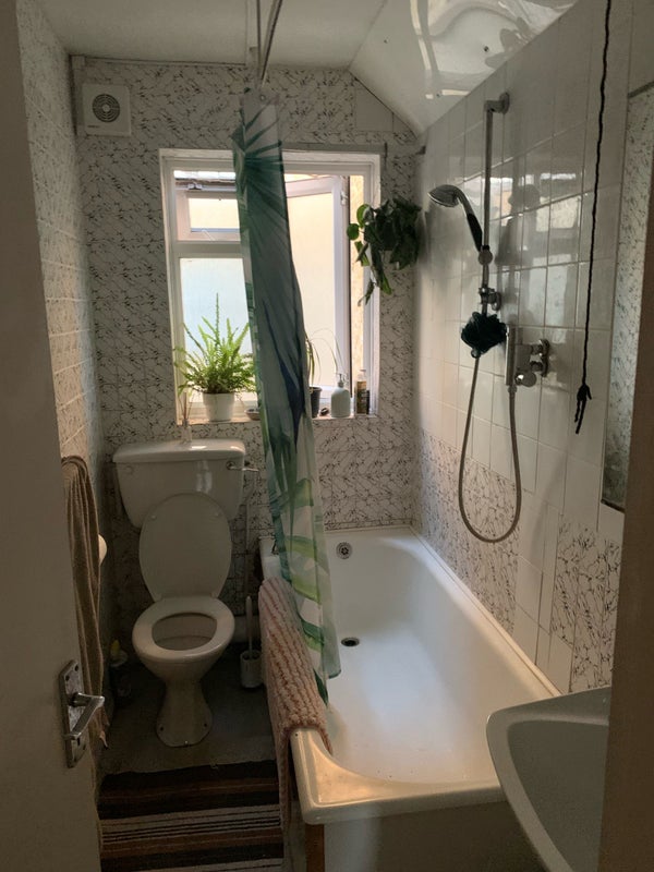 Bathroom includes a bath and shower. Washing machine in flat too.