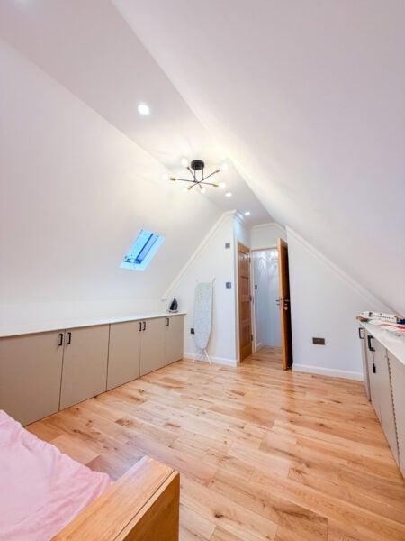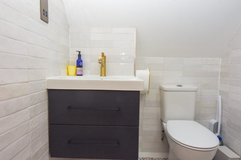 The ground floor boasts a bright and expansive L-shaped reception area, providing excellent space for both relaxation and entertaining. This flows seamlessly into a contemporary open-plan kitchen, creating a sociable and functional living environment. A convenient downstairs cloakroom with WC completes the ground floor.
