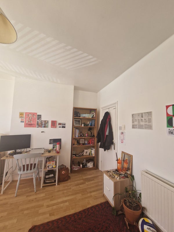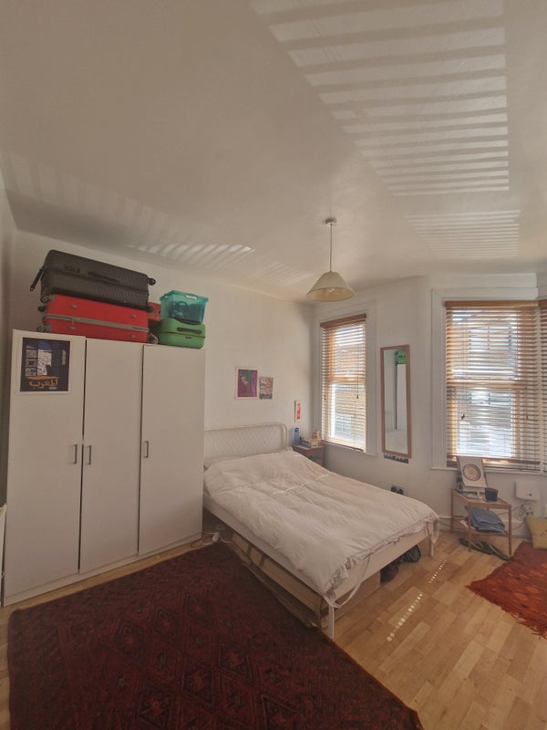 This is a south-facing, sunny and bright double bedroom with big windows. It is located just off Green Lanes, which means it is quiet but conveniently located a 2 minute walk from 141 and 29 bus stops, and under 10 minutes from Turnpike Lane tube station. It is closed to shops including a big Sainsbury's, and 15 minute walk to Harringay Green Lanes overground and Hornsey train stations. The room gets the sun all day and is very spacious, with a double bed and wooden floors. The living room is spacious and the kitchen is convenient and clean. Looking for a clean and respectful flatmate to take over my room.