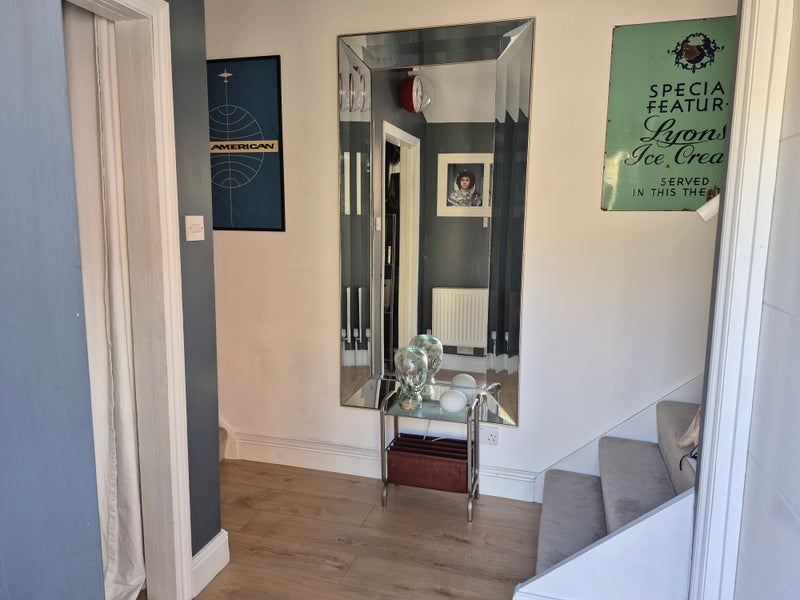 This is an unusual property, totally remodelled and refurbished last year and full of interesting bits and pieces, eclectic furniture and fittings. There are two staircases going in different directions, one of which leads to the available room.