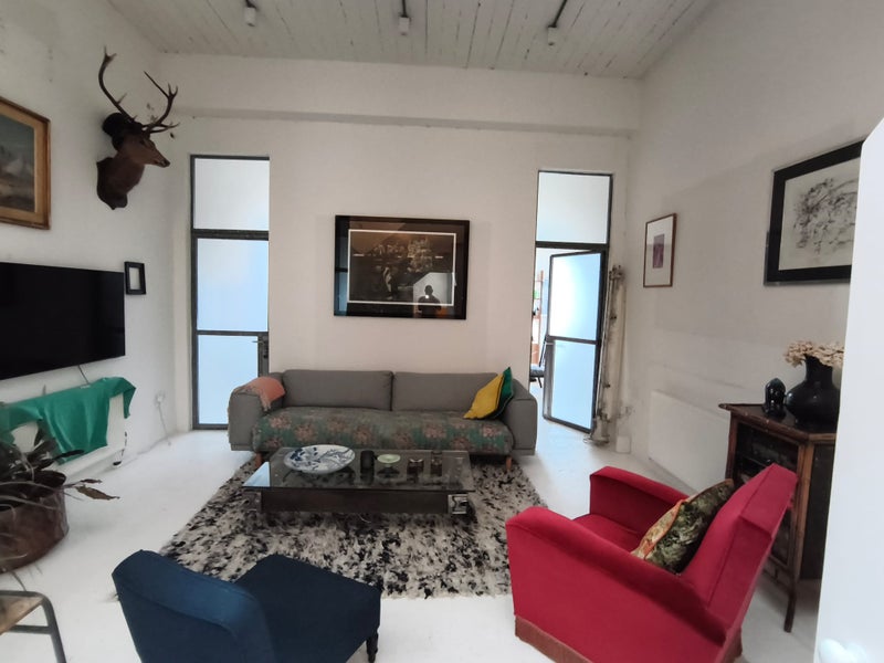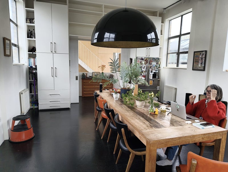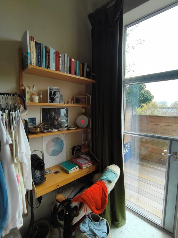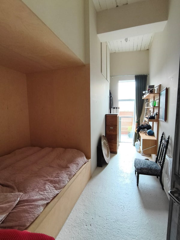 I live in a three storey warehouse on my own. There are 3 bedrooms. 2 are on the ground floor with access to a garden terrace. One of these is vacant and the other is the room for rent. I live on another level.