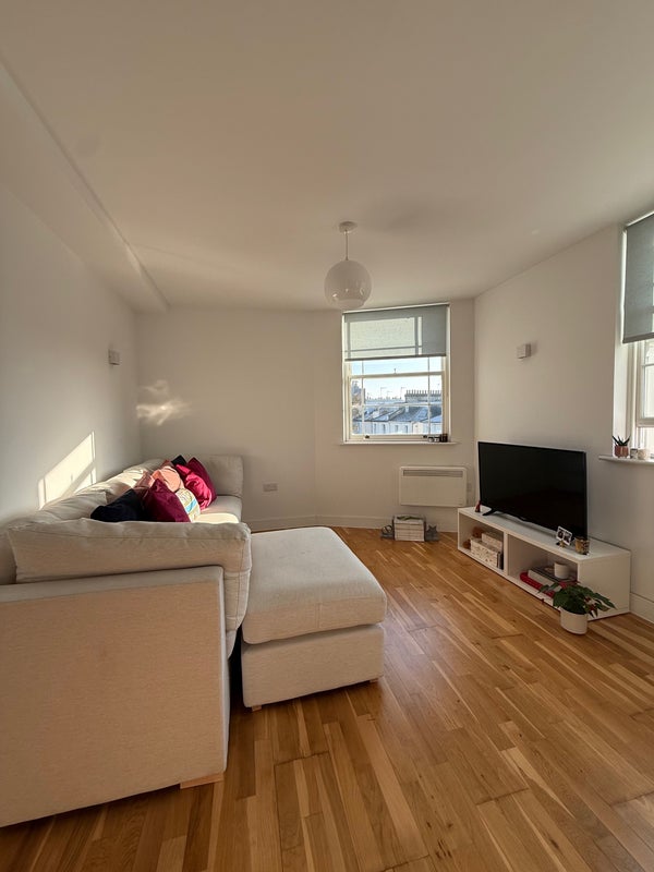 A beautifully presented, bright, and furnished room with private bathroom in a modern two-bedroom, two-bathroom flat.