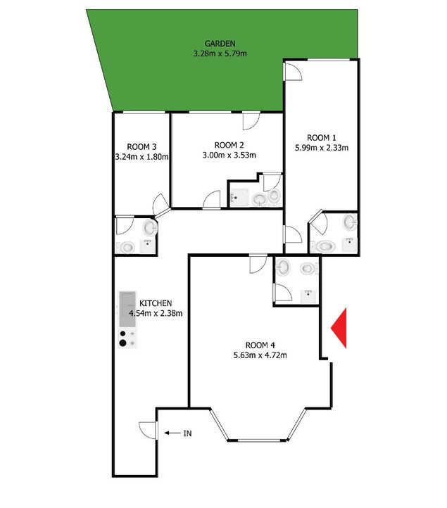 The property also features a shared modern kitchen and a lovely garden, exclusively shared with the other flatmates, perfect for relaxing or enjoying the outdoors.