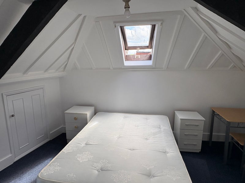 The large loft-conversion studio comes with double bed, full kitchen (including a washing machine), and large bathroom. Located on 2nd floor.