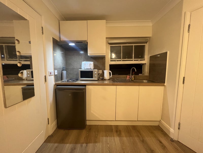 The accommodation includes a stylish en suite shower room and a compact yet well-appointed kitchenette, complete with essential appliances to support everyday living. The layout has been carefully designed to maximise space and functionality while maintaining a bright and airy feel throughout.