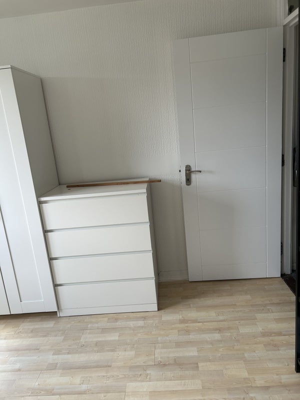 Fully furnished; double bed, mattress, wardrobe, drawers, and small table.