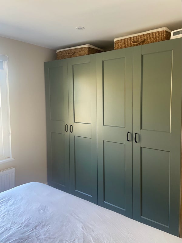 The available (larger) room includes a newly installed wardrobe with lights which will be staying and currently has a super-king bed. In my opinion, the bed currently dominates the space and can be kept if desired, but this could also be replaced with a double bed which I believe would create a much nicer space (and room for a desk).
