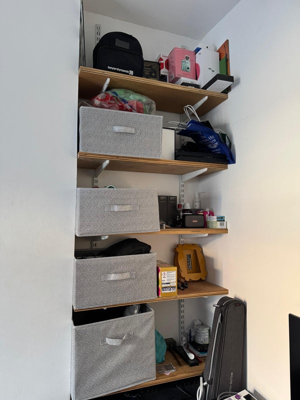 Furnished with a double bed, bedside table, drawer and 5 wall shelf’s