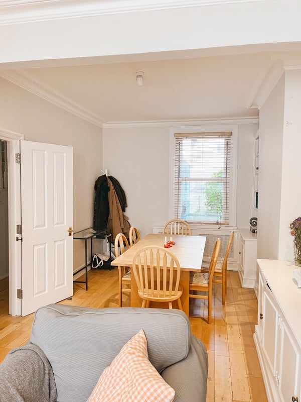 We are two girls in our early 30s with a lovely spacious double bedroom available from 6 June, with move-in flexibility throughout the month. Our home is a large 3-bed terraced house in Parsons Green, and the bedroom available is the beautiful primary bedroom with 3 built in wardrobes!