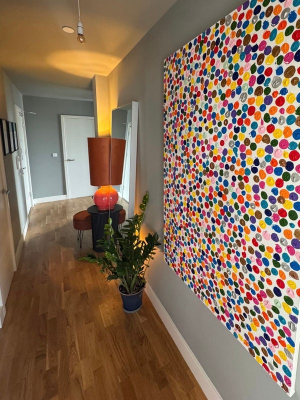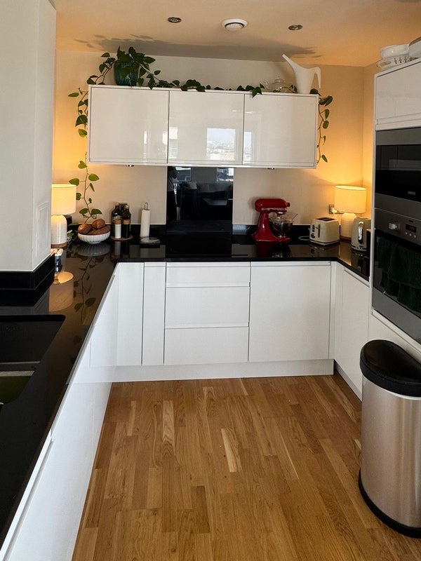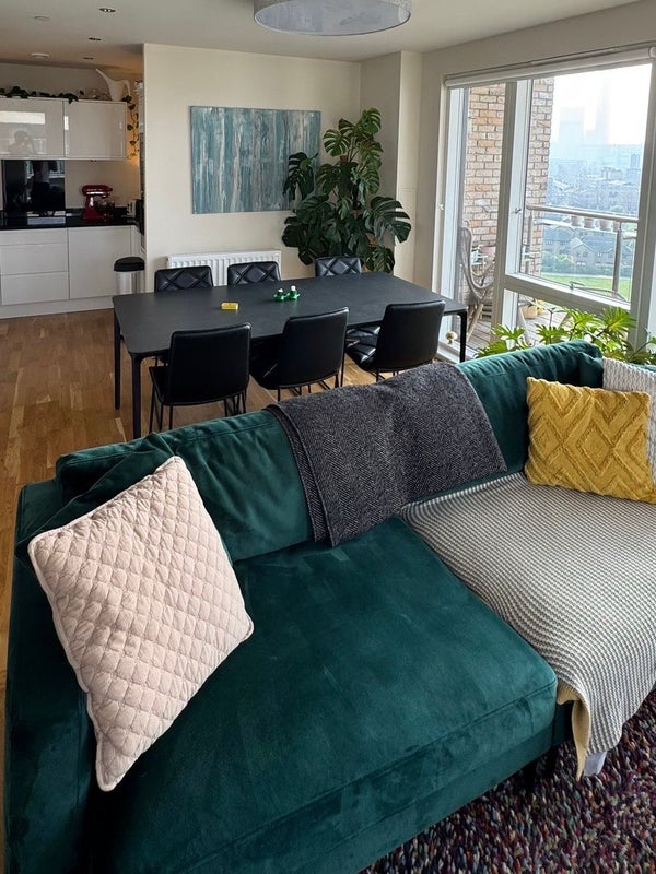 You'll be living in a spacious 3-bed, 2-bath apartment on the 10th floor overlooking a large green park and the canals of East London. The third bedroom is mostly used as an office, with the occasional guest stay.