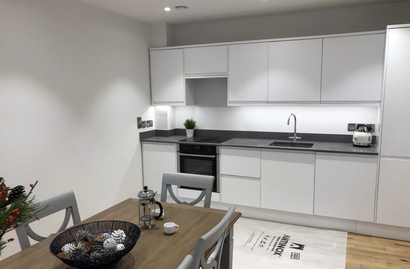 The flat has a spacious and modern kitchen and living room that we all share, plus a handy storage room. It’s equipped with all the essentials-washer, dryer, and dishwasher.