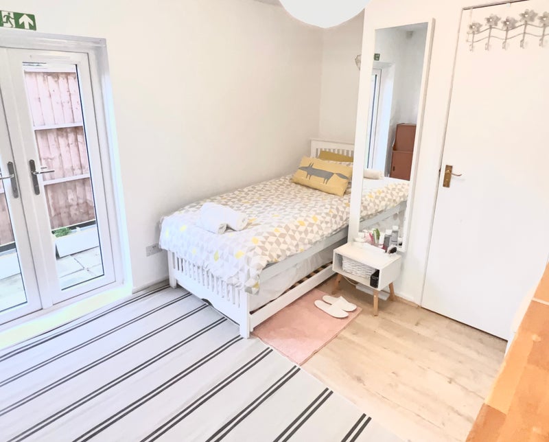This self-contained space features a private guest-entrance, ensuite and a fully equipped kitchenette. No shared spaces at all.