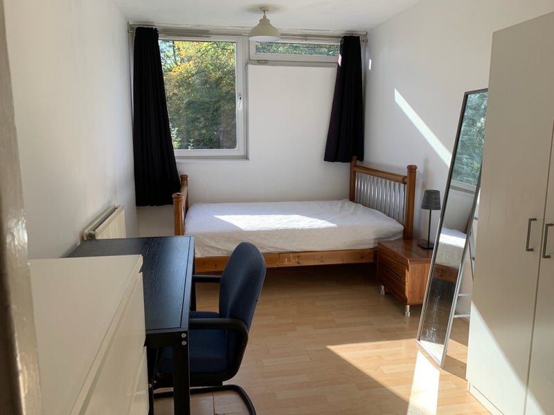 Room available in a 3 bed flat sharing with 2 friendly guys. One is a chef and the other works in finance. The room is a large double with double bed, desk for home working and wardrobe.