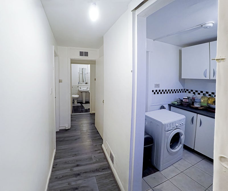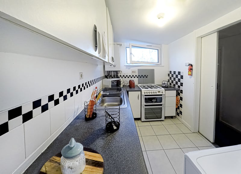 Functional kitchen with plenty of cupboards, gas hob & washing machine