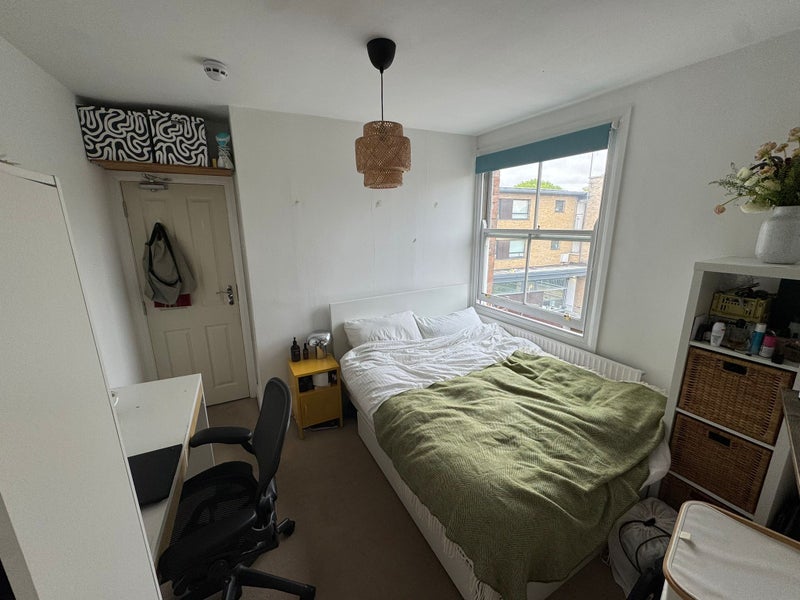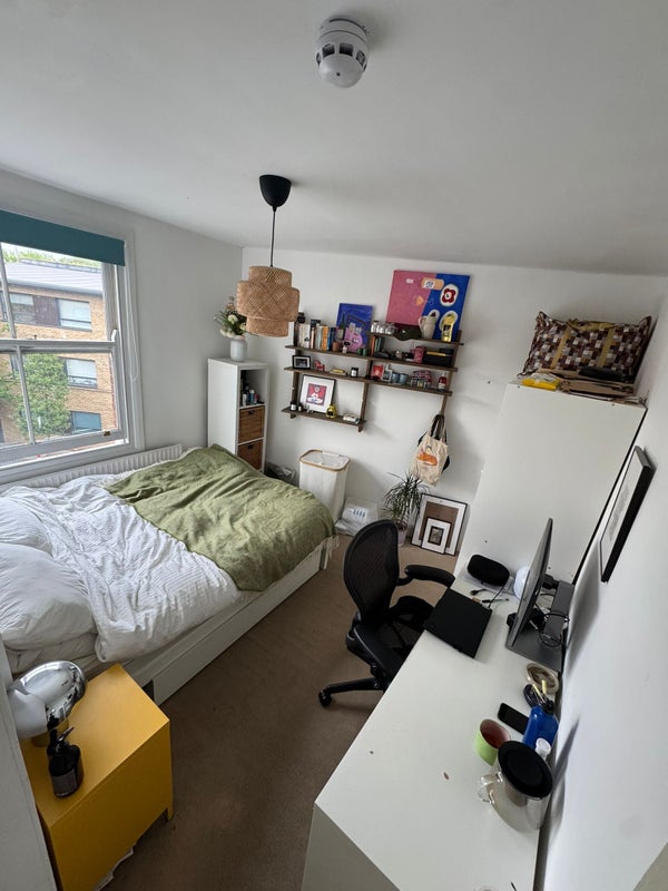 The room is on the second floor with a bathroom right next door which is shared with one other person. It comes with a double bed, wardrobe and shelving unit. The room is £960 and bills on top come in around £100 per month.