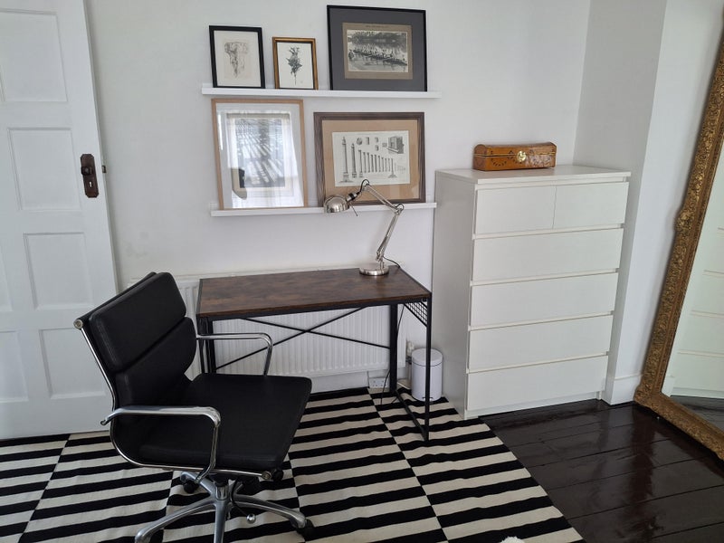 Regular bus routes every few minutes from right outside the front garden gate. Kings Cross is only 10 minutes away by bus or tube. The room is an airy spacious double bedroom with a big double glazed window, with wardrobe, chest of drawers and a desk...and of course a comfortable double bed. Utilities are shared for fair usage and the council Tax (band D) is split each month. The kitchen has all the usual mod cons including a dishwasher and clothes washing machine. There is great bathroom with a huge mirror.