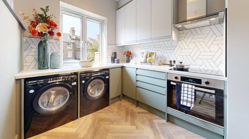 The kitchen dining living area features quartz stone worktops, high-end appliances, and a dishwasher. There are multiple appliances to ensure plenty of facilities for all housemates. The double washer-dryers mean you never have to wait for someone else to finish their laundry. Each housemate has been designated their own generously sized individual food storage.