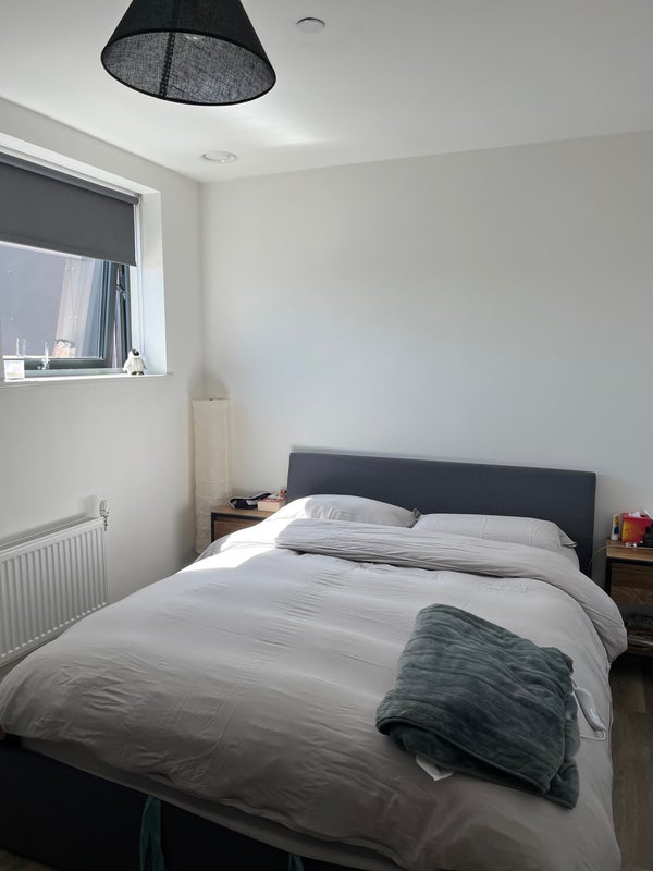 Fully furnished, king size bed with a new mattress, chest of drawers and a wardrobe.