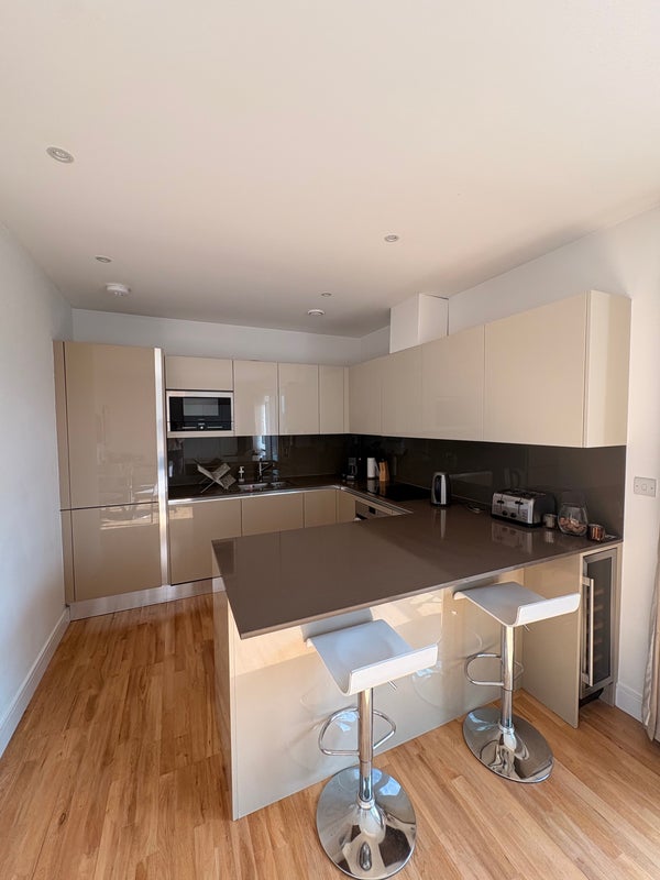 The flat features two bedrooms, two bathrooms, an open plan kitchen/living room with a balcony! The flat is in the Battersea Reach development which includes concierge, shared parking spot, gym and coffee shops/pub.