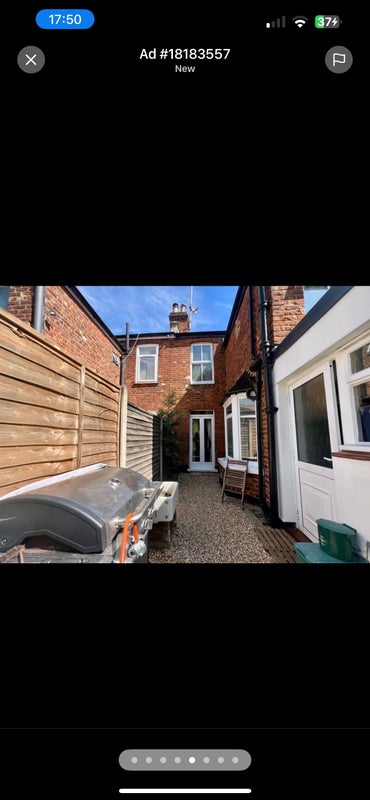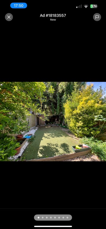 House with a double bedroom with direct garden access available from 1st May. Room comes with a double bed (mattress & white wooden frame), , side table, white metal clothing rail, 2 shelving units seen in the photos.