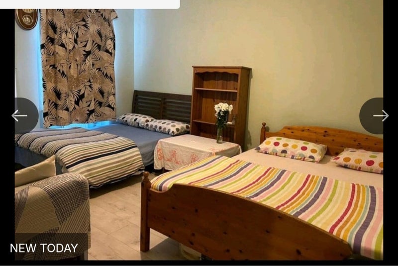 Very quiet, safe, very spacious room with 2 beds for two people to share in a flat. Two wardrobes are also in the room. Rent shown is for one person.