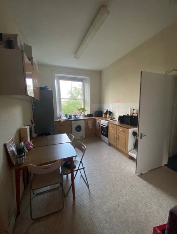A large bright and comfortable bedroom available in Polwarth Gardens. The flat has spacious kitchen with a comfortable living room, with one bathroom and is occupied by 3 other students about to graduate this summer. Has great transport links into the centre of town and the rest of Edinburgh.