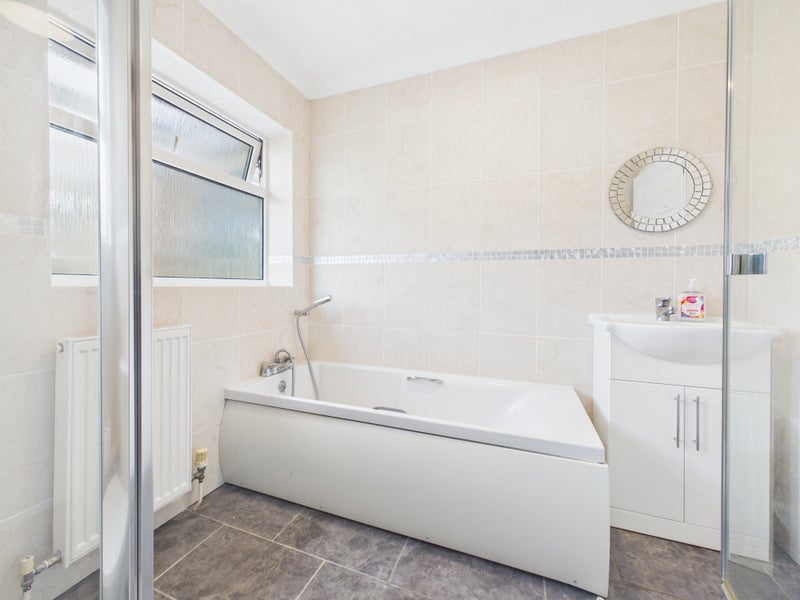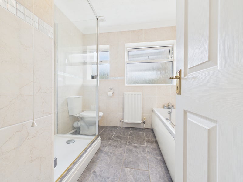 The bathroom is fitted with a bath and shower, WC, and wash hand basin, providing a functional and well-presented suite for everyday use.