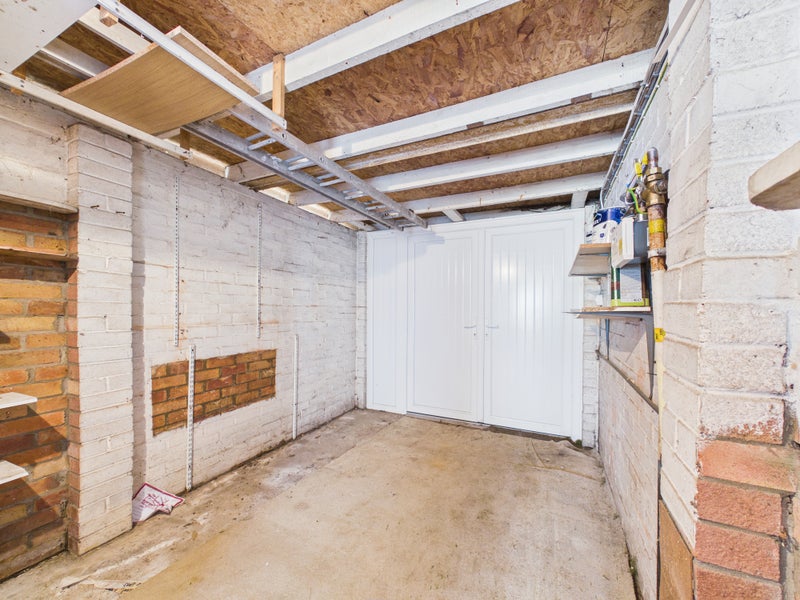 To the front, a driveway provides off-road parking for multiple vehicles. The property also benefits from a garage, complete with an additional workshop area—perfect for storage, hobbies, or DIY projects.