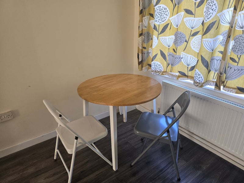 This is a spacious double bedroom in a 3bedroom house. Furnished as seen in pictures. The property is located 2mins drive to town centre and 5mins drive to train station. All bills inclusive. It has free on street parking. Anyone is welcome