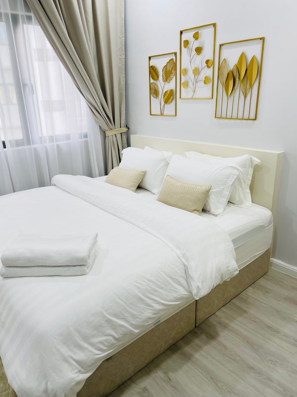 All rooms offer hotel standard decor with comfortable divan beds, new duck feathered duvets, pillows and bed sheets. There are brand new wardrobes, bedside cupboards, chest of drawers; providing plenty of storage options, and ample lighting with lamps in each room. The rooms have large windows allowing in lots of natural light swell has high ceiling.