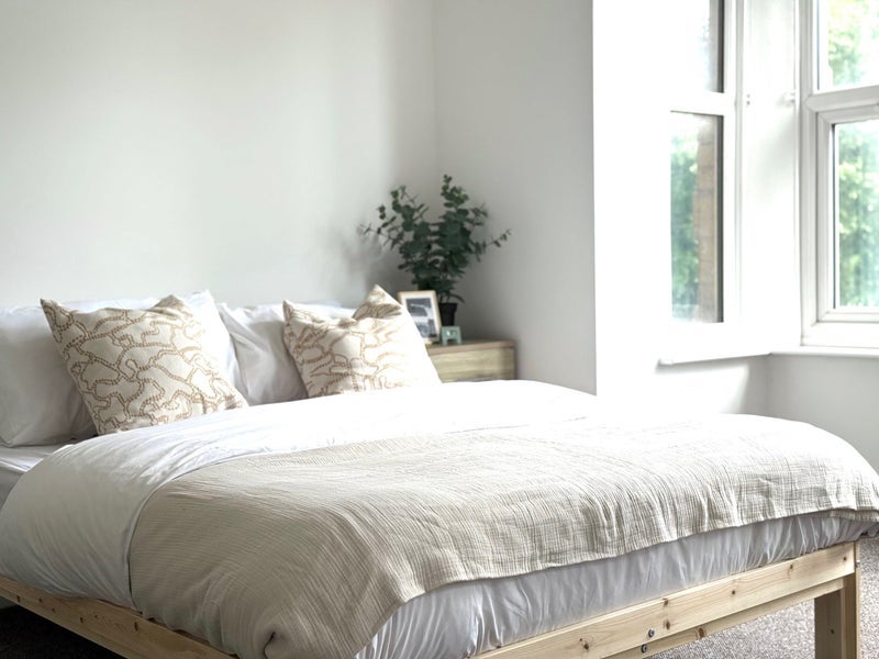 The entire house is newly refurbished, with a new fitted kitchen which includes a built in fridge and freezer. 2 x washing machines, new flooring throughout. Each room includes a new double bed, new double mattress, new mattress protector. Depending on room size, furniture may also include: wardrobe, chest of drawers and bedside table. Each room has new blackout roller blinds. A secure key lockbox is fitted outside the front door and outside every bedroom. The house has one upstairs bathroom with a toilet, sink and shower and one downstairs loo with toilet and sink.