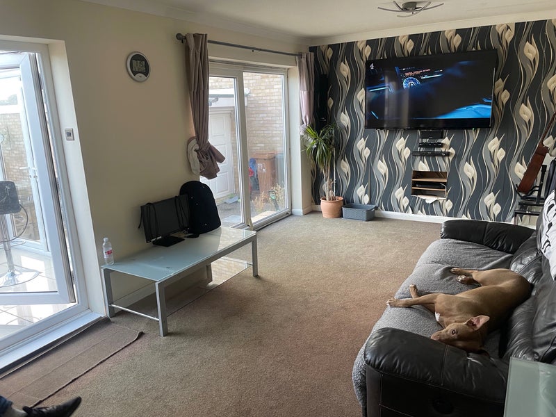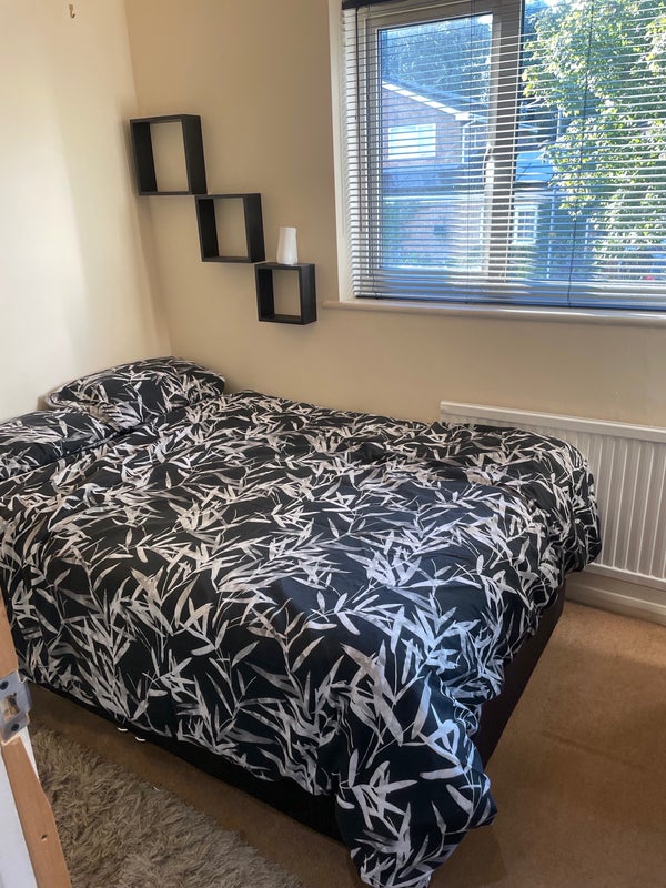 Room available in western favell area of Northampton double bedroom fully furnished within a 4 bedroom house shard areas are kitchen bathroom upstairs and toilet downstairs living room and garden currently 3 people living there including the owner parking is available in the street 10 minutes walk from western favell shopping center there’s 2 friendly dogs currently living in the house