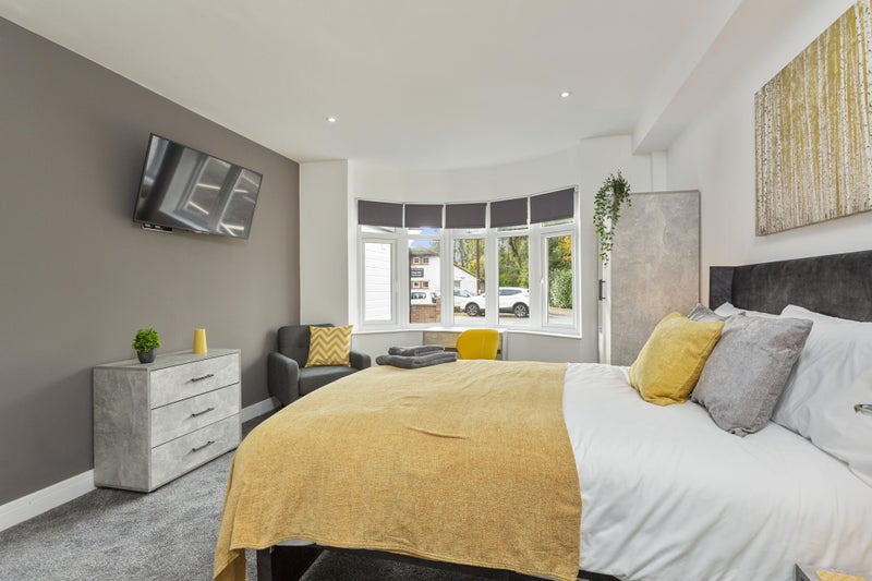 The room is a GREAT LARGE DOUBLE EN SUITE that comes FULLY FURNISHED with a double bed, orthopedic mattress, wardrobe, bedside table, set of drawers, desk and a free-view tv point and flatscreen smart TV provided.