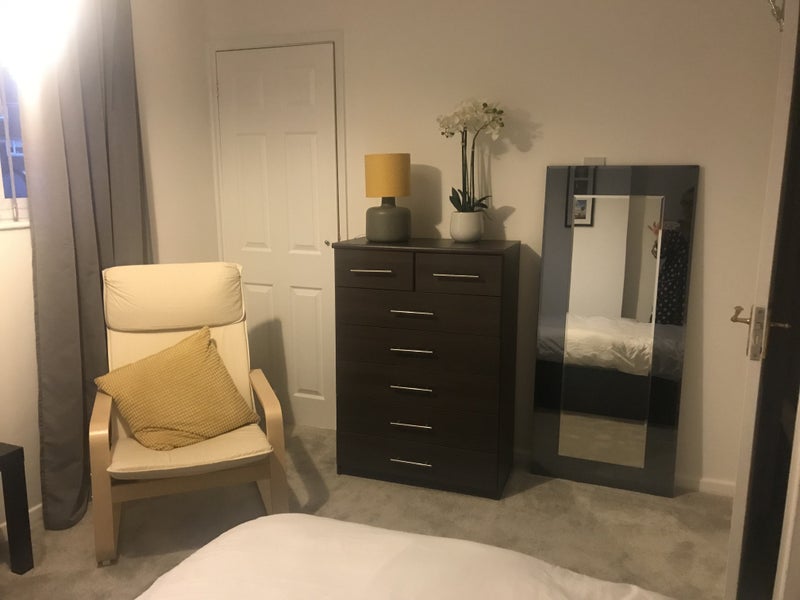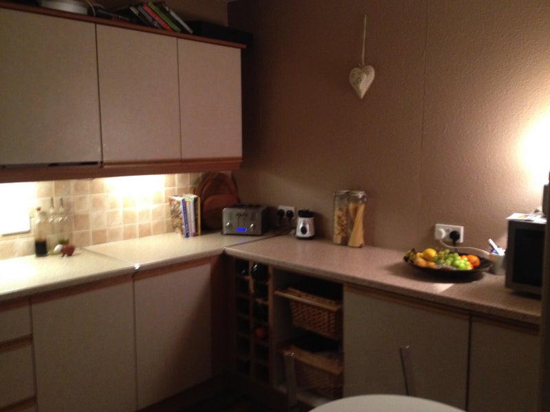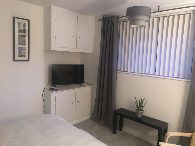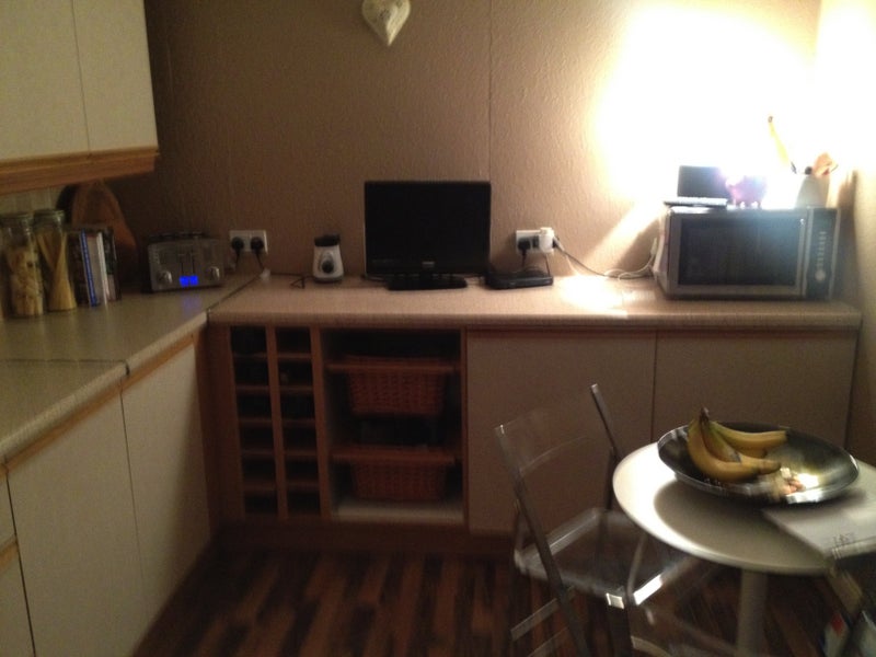 Spacious double room with double bed, broadband. Good size kitchen with table and chairs