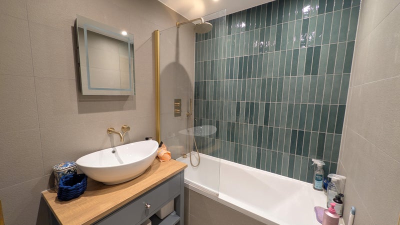The flat has two rooms and 2 bathrooms. Open plan kitchen and living room with bifold doors to the garden. Dishwasher and washing machine available.